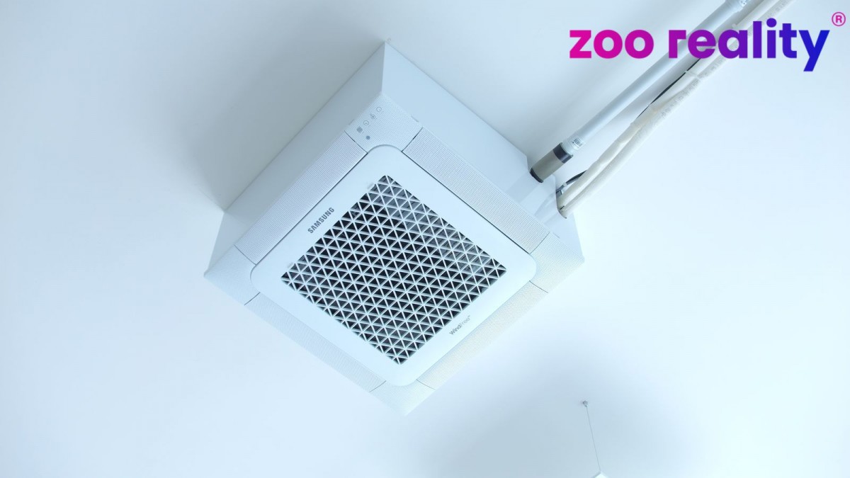 Venkovní ventil je nezámrzný uzamykatelný. Klimatizační systém tvoří dvě interiérové kazetové jednotky Samsung a jedna venkovní klimatizační jednotka .