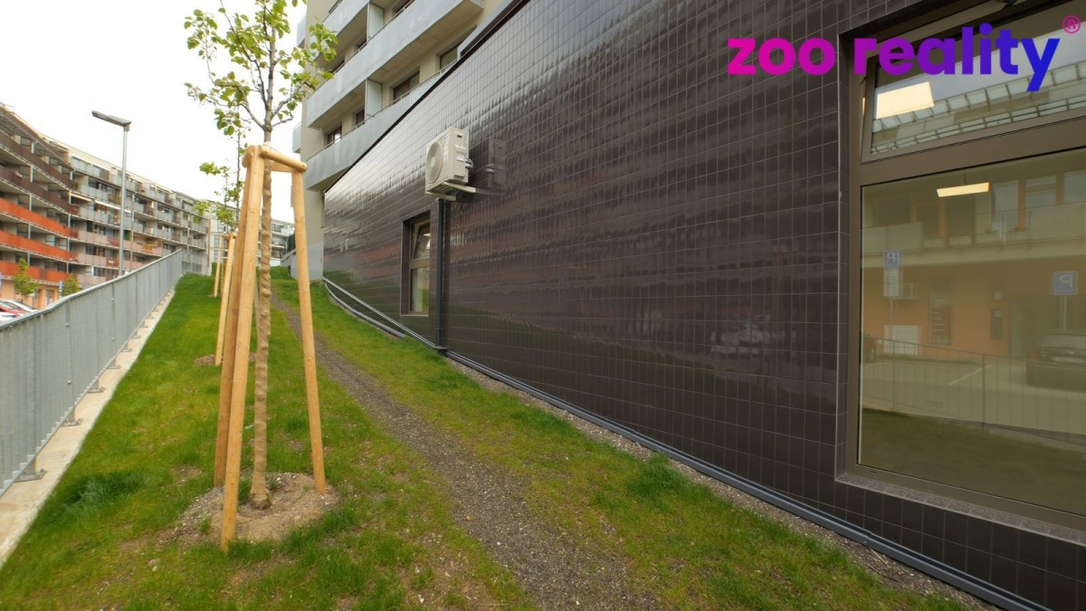 Okolí nebytové jednotky je upraveno zámkovou dlažbou a trávníkem, což dodává přívětivý dojem. Lokace se nachází v centru města, což umožňuje snadnou dostupnost pro klienty i zaměstnance.