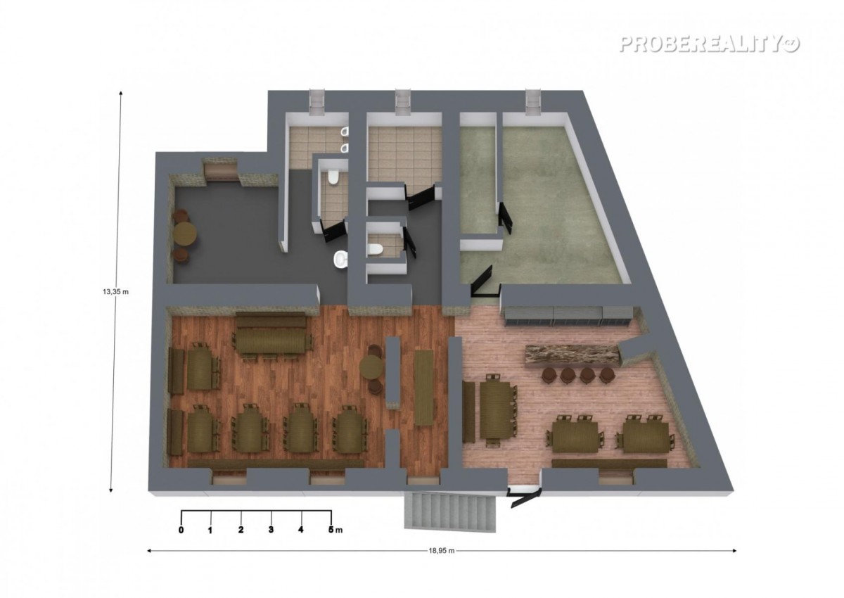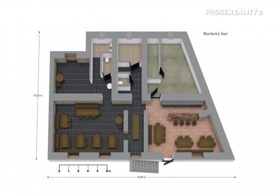 Pr...ostor je zkolaudován pro provoz baru, ateliéru nebo kanceláří. Aktuálně je zde provozován zavedený a profitující rockový bar s tradicí více než 25 let. Objekt je vytápěn elektrickými přímotopy, nachází se přibližně 2 metry pod úrovní terénu a disponuje zaslepenými okenními otvory v horní části stěn.