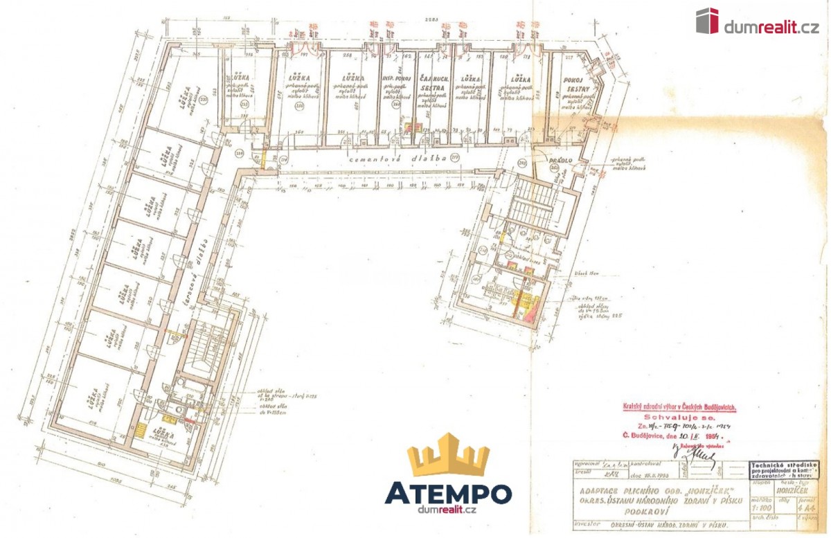 Více info Vám poskytne realitní makléř Tomáš Pelda. . Dumrealit. cz Vám nabízí prodej stavebního komplexu s pozemky na exkluzivním místě u lesa na adrese U Honzíčka s č. p. 172, Budějovické Předměstí - Písek. Nemovitost... s pozemkem je zapsaná na LV č. 17761 v kú Písek, Budějovické Předměstí. Komplex s uzavřeným dvorem sloužil jako nemocnice. Dle územního plánu je pozemek určen ke smíšené zástavbě s využitím jako např. : dům s pečovatelskou službou; bytová výstavba apod. . Zděný komplex včetně výtahu je před rekonstrukcí. Nosné konstrukce domu jsou v dobrém stavu bez statických problémů. Objekt je připojen na veřejný vodovod a městskou kanalizaci. Částečně podsklepený zděný dům byl vytápěn kotli na tuhá paliva včetně ohřevu teplé vody. K dispozici máme částečnou projektovou dokumentaci a předběžnou informaci s možnostmi zástavby. Více info Vám poskytne realitní makléř Tomáš Pelda z realitní kanceláře A TEMPO fungující pod ochrannou známkou dumrealit. cz. Ev. číslo: 655003. Energetický štítek: G