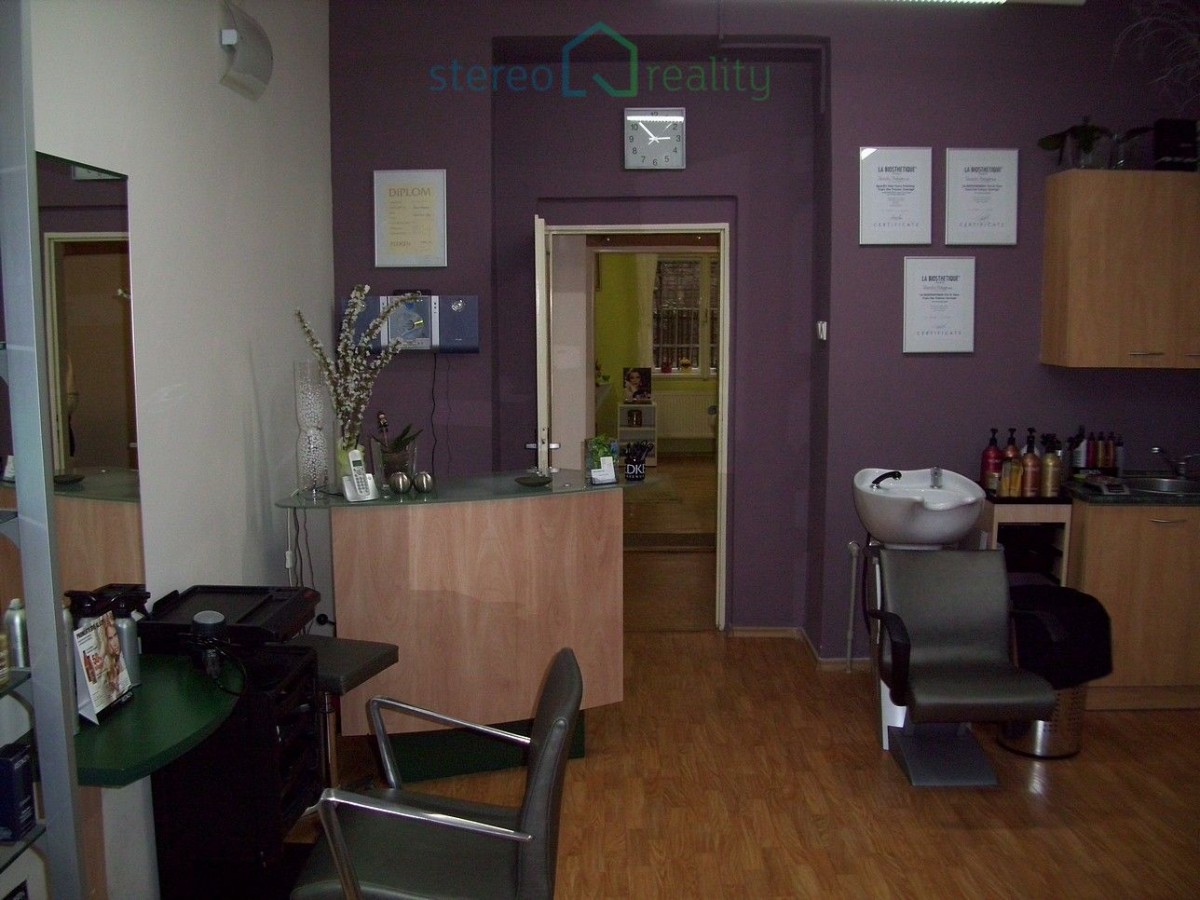 Tento prostor, který má okouzluj...ící interiér je nabízen buď k pronájmu jednoho kadeřnického křesla nebo jako pronájem celého kadeřnického prostoru o velikosti 23 m2 kdy se k ceně pronájmu platí 1. 000 Kč za vodné + stočné/tři měsíce. Jsou zde umístěna 2 kadeřnické křesla, mycí mísa, kuchyňská linka na míchání barev, sedací souprava se stolkem pro zákaznice a recepce.