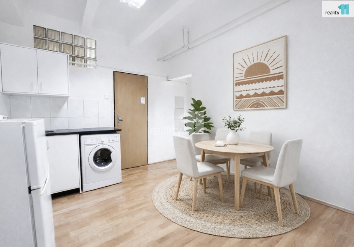 Dispozice tvoří místnost, kuchyň a koupelna se sprchovým koutem a sociální zařízení WC.