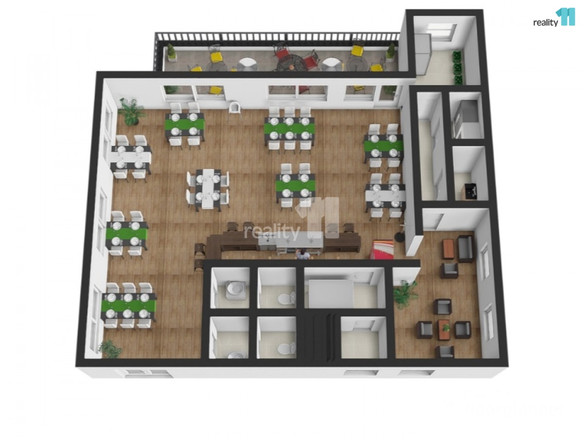 Restaurace se rozkládá ve dvou patrech a nabízí velkorysé prostory s mnoha možnostmi využití: