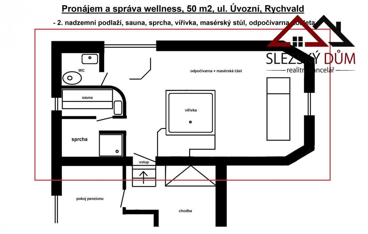 Nabízíme k pronájmu kompletně vybavené komerční prostory - wellness o velikosti 50 m2 v multifunkčním objektu Penzionu SILMA v obci Rychvald. Prostory se nachází ve 2. nadzemním podlaží s přístupem přes penzion....