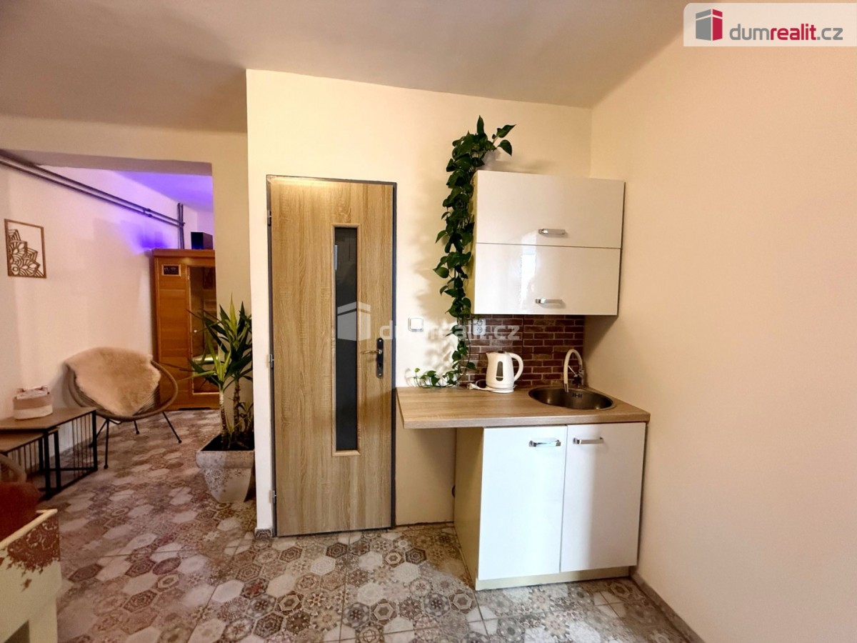 Ve vnitřních prostorách nemovitosti vznikl nový wellness apartmán, který má vysoký potenciál pronájmu. Disponuje předsíní, samostatnou toaletou, kuchyňskou linkou a dále zahrnuje privátní vířivku, infrasaunu od značky Marimex, která je vyrobena z kvalitního dřeva (kanadský jedlovec - hemloc) a díky svému designu se hodí do každého interiéru. Nechybí ani příplatkové doplňkové služby jako jsou: příprava vodní dýmky, láhev kvalitního šampaňského, či tématické úpravy dle požadavku zákazníka (Valentýn, výročí).