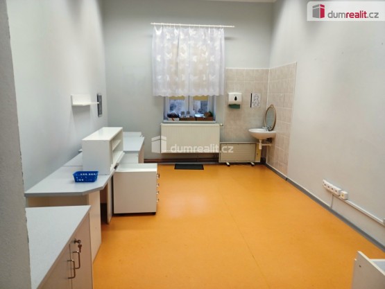 Kauce+ RK. Exkluzivně nabízíme k pronájmu komerční prostor velikosti 75 m², v centru města Děčína, vhodný pro ordinaci lékaře nebo jako fyzioterapeutické cent...rum. Ordinace se nachází ve 1. patře cihlové budovy včetně výtahu, lékařského domu, s celkovým počtem 4 podlaží. Prostory jsou vybaveny dvěma spojenými místnostmi. Každá má samostatný vchod, sociální zařízení, šatnu, společnou připojenou čekárnu. Kuchyňku a vybavení po bývalém lékaři viz. foto lze dále využívat.