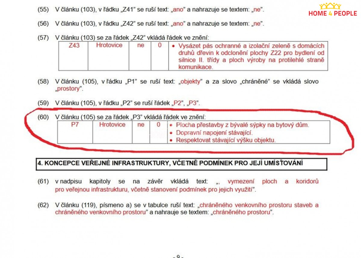 Dle nového ÚP proběhla změna přestavby P7 z bývalé sýpky na bytový dům s respektováním výšky objektu.
