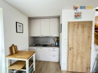 Vstupní prostor nabízí praktické úložné skříně, obytná část s TV koutem a kuchyní, koupelna s prostorným sprchovým koutem.
