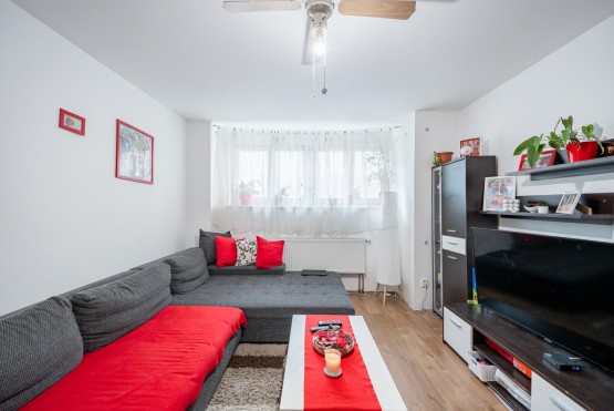 První je garsoniéra (1+1) o velikosti 33, 70m2, která je opticky rozdělena na spací část a obývací část, vybavena kuchyňským koutem a koupelnou se sprchovým koutem. Je orientována do vnitrobloku domu.