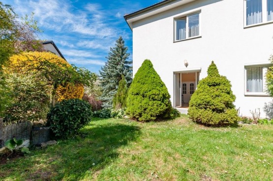 Součástí vybavení jsou nová okna izolačními dvojskly a s exteriérovými žaluziemi, dřevěné dubové parketové podlahy, keramická dlažba, kompletně nové elektrorozvody, vody, nová střecha Bramac a obložení měď, nový plynový kondenzační kotel Vaillant a zabezpečovací zařízení. Kuchyňská linka se zabudovanými spotřebiči. Dominantou udržované zahrady jsou mohutný smrk, který doplňují okrasné keře a ovocné stromy. Dvojgaráž s pojízdnými vraty Hőrmann s automatickým ovládáním a s vjezdem přímo z ulice je prakticky umístěna přímo pod domem.
