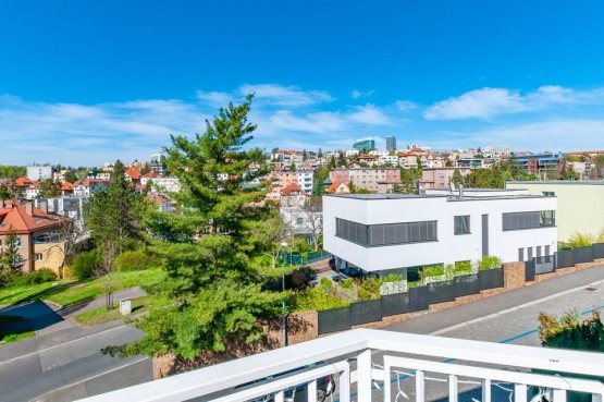 Dispozice vilky s velkorysým prostorem pro rodinné bydlení zahrnuje čtyři podlaží, která jsou propojena samostatným schodištěm. Přízemní prostor tvoří vstupní prosklenou halu, pokoj pro hosty, šatna, malá koupelna prádelna, s pračkou a sušičkou, 2 krát sklep. 1. podlaží zahrnuje velkorysý prostor obývacího pokoje s jídelnou s přímým vstupem do zahrady, odpočinková část s posezením a TV a vstupem do zimní zahrady, přilehlá samostatná kuchyň s oknem, spíž, oddělená toaleta, jedno umyvadlo, okno. 2. podlaží - hlavní ložnice s oknem do zahrady, pracovna, hlavní koupelna s rohovou vanou, šatna, další pokoj pro hosty s koupelnou a toaletou a vstupem na velkou terasu s moc hezkými výhledy do okolí. 3. podlaží umístěné v podkrovním prostoru je využíváno jako pracovní studio s posezením, spací části a přímým výstupem na prostorný balkon s letním posezením, který navozuje absolutní pocit ničím nerušeného soukromí a klidu s výhledy do zeleně.
