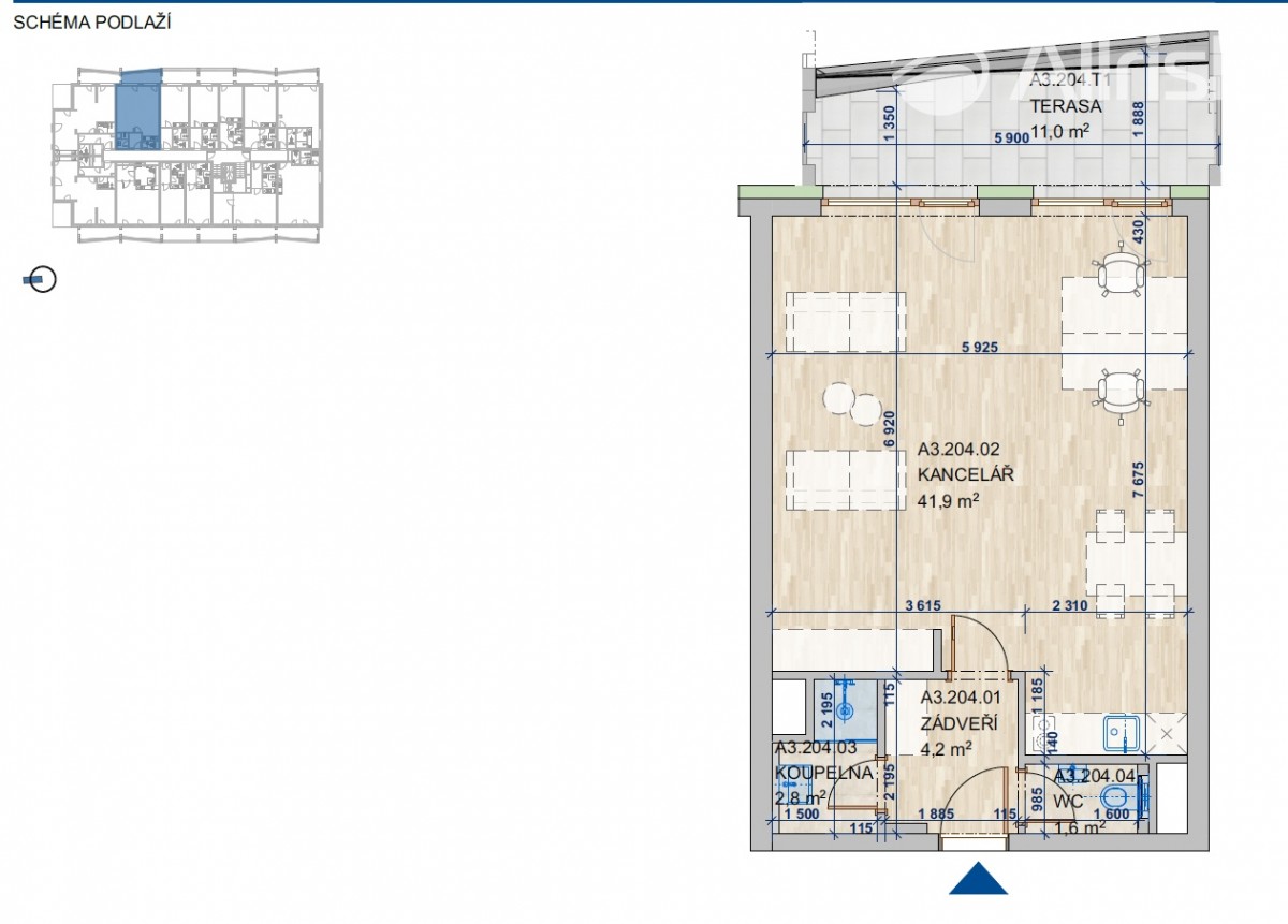 V tomto projektu nabízíme kancelář o výměře 51, 5 m2, (1+kk) s terasou 11 m2, který je umístěn ve 2. nadzemním podlaží. Kancelář je prosvětlena francouzskými okny orientovanými západním směrem s výstupem na terasu. Jednotka je oddělena od společné chodby zádveřím s možností úložného prostoru. sociální zařízení WC v samostatné místnosti. Koupelna je vybavená sprchovým koutem, umyvadlem a prostorem pro pračku. .
