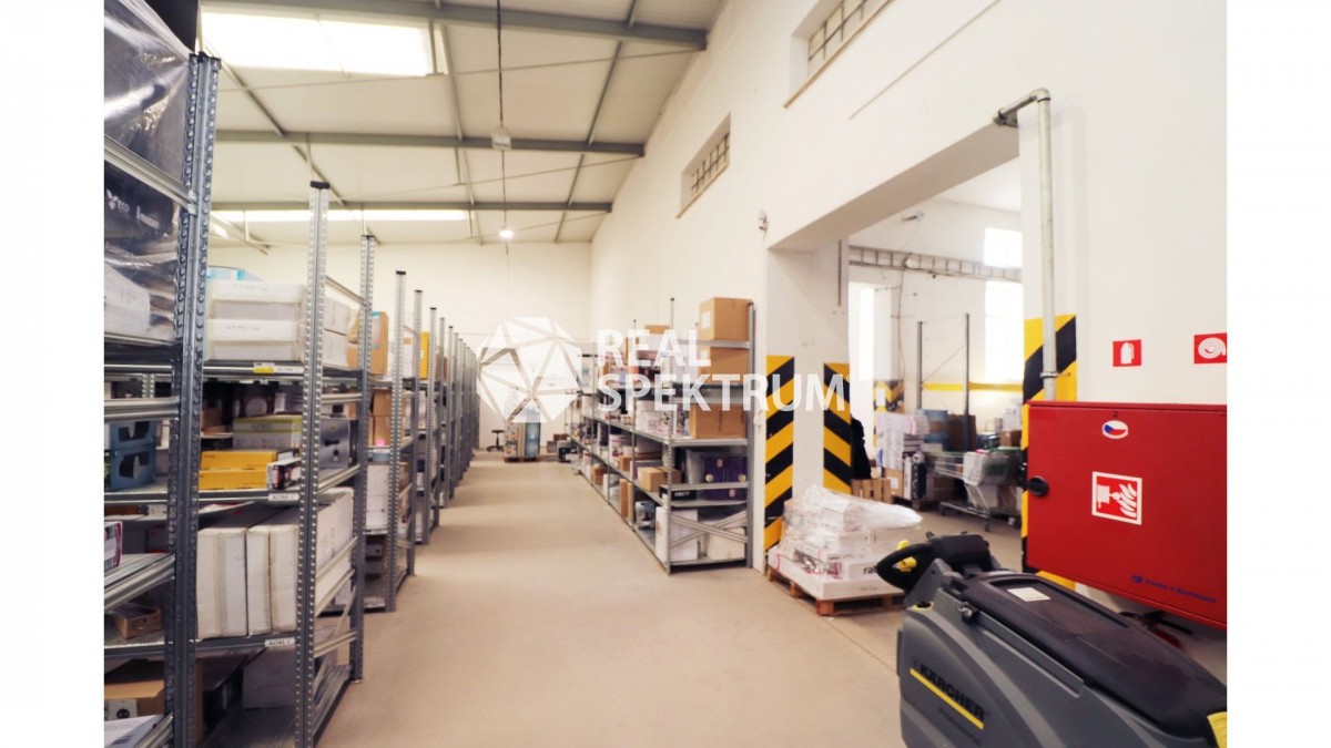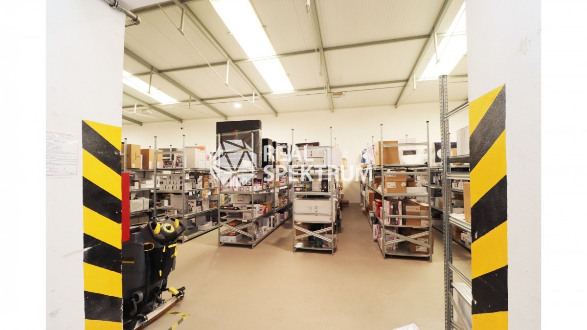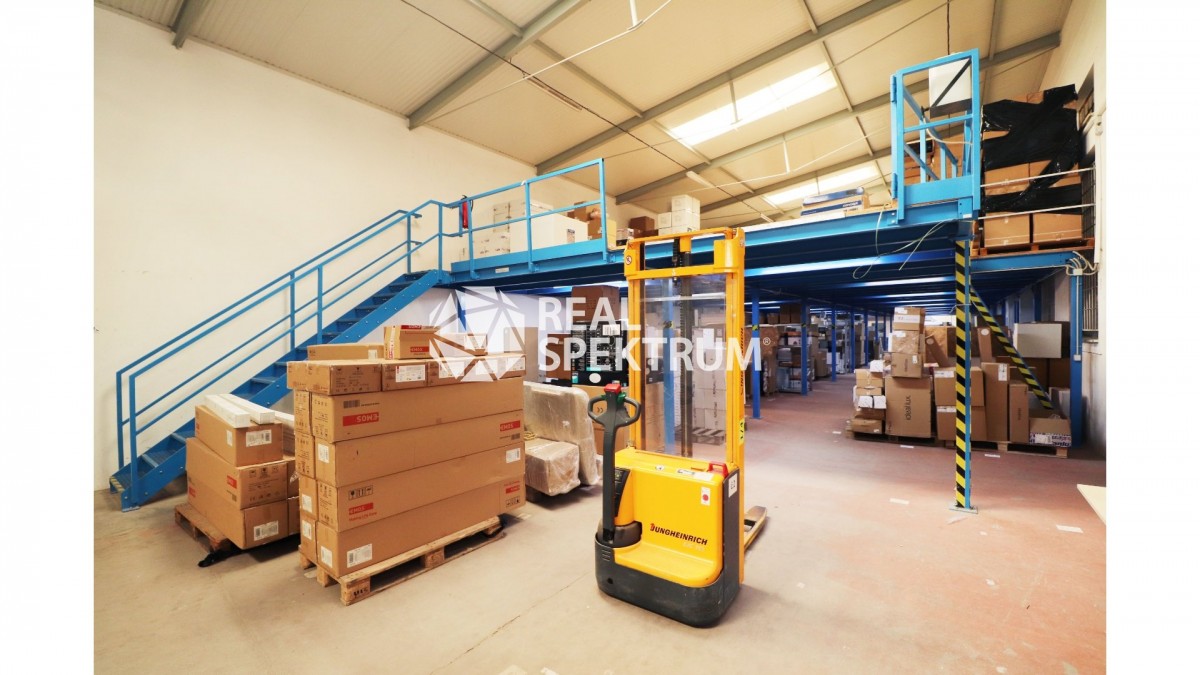 Hlavní výrobní/skladová hala: cca 1 420 m2 (zvýšení skladových ploch kovovou vestavbou - skladovou galerií) přístupná z administrativního objektu, vytápěná, betonové zátěžové podlahy, sekční vrata