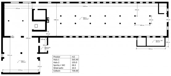 Celková užitná plocha objektu je více než 700 m2. Objekt má hlavní přístup přes elektrick...á vjezdová vrata o šířce 3, 7 m a výšce 3, 6 m. Světlá výška v přední části objektu je 3, 8 m. Pro vytápění se využívá teplovzdušný automatický kotel na peletky s výkonem 49 kW a kotel na dřevo s výkonem 15 kW. Pravidelná dodávka pelet je možná za výhodné ceny, protože jejich výroba probíhá ve vedlejší hale. Hodnota hlavního jističe 3 x 80A. Prostory prošly celkovou rekonstrukcí včetně vybudování sociální zařízení WC a sprch.