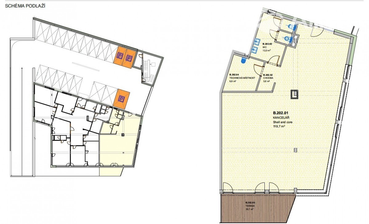 Prostor je nabízen v provedení Shell & Core s dokončeným sociálním zařízením, což umožňuje novému majiteli úpravu dle vlastních potřeb. K jednotce náleží terasa a je možné dokoupit až tři parkovací stání přímo u prostoru.
