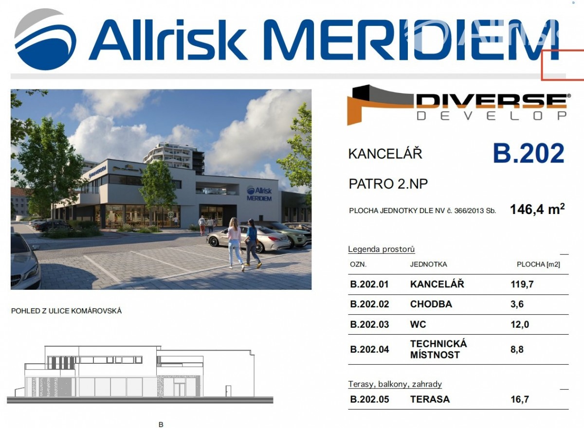 Nabízíme komerční prostor o velikosti 147 m² ve 2. nadzemním podlaží prestižního komplexu, který získal ocenění Realitní projekt roku 2023 v kategorii Cena ve...řejnosti. Projekt tvoří tři rezidenční objekty A1, A2 a A3, propojené s komerční budovou B, kde se komerční prostor nachází a stává se výraznou dominantou nově vznikající čtvrti Trnitá – největší urbanistické proměny v historii města Brna.