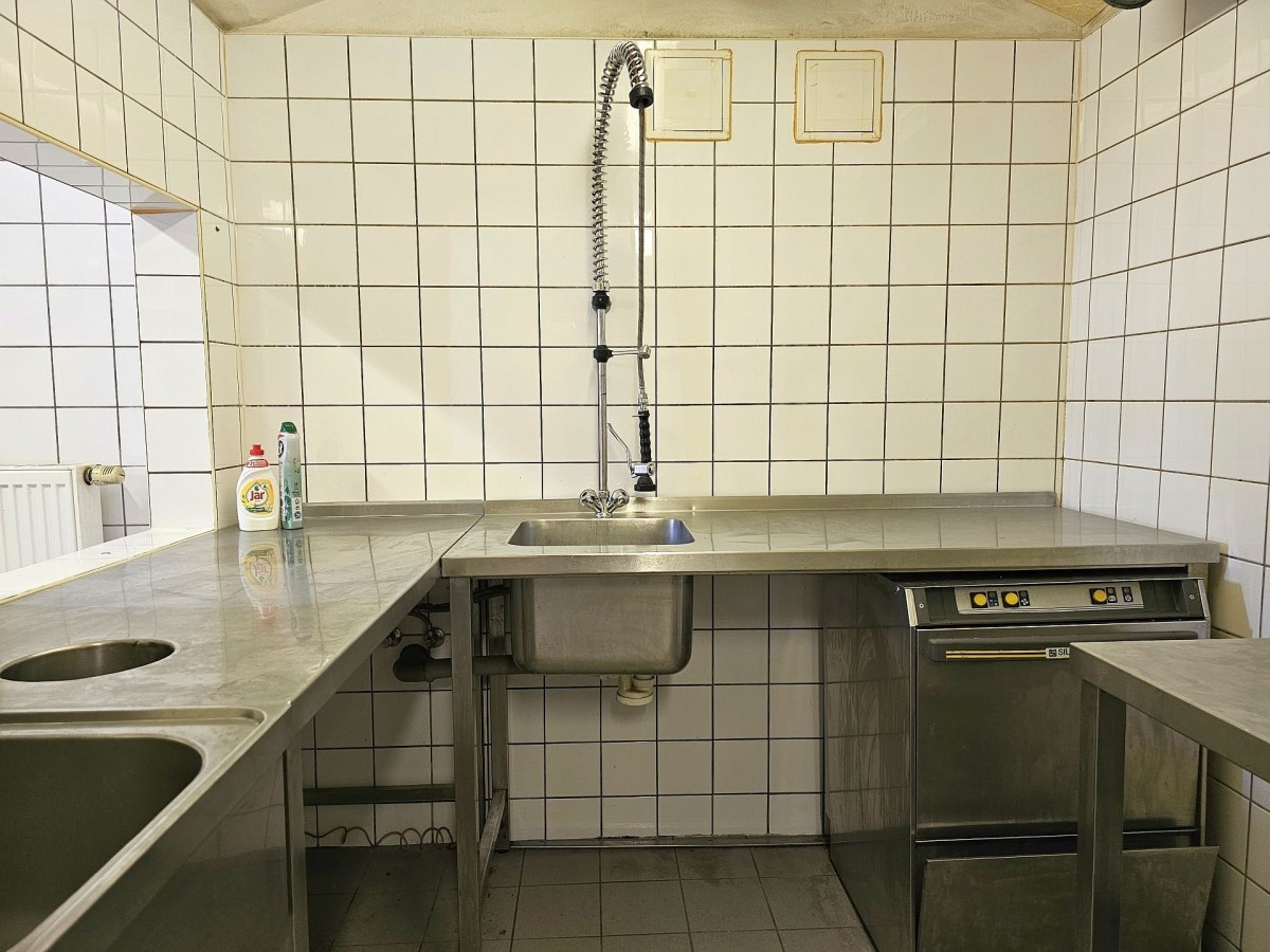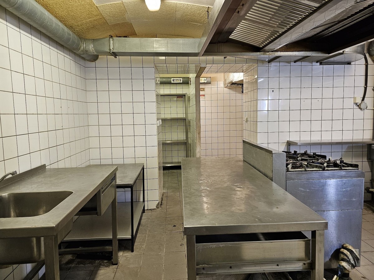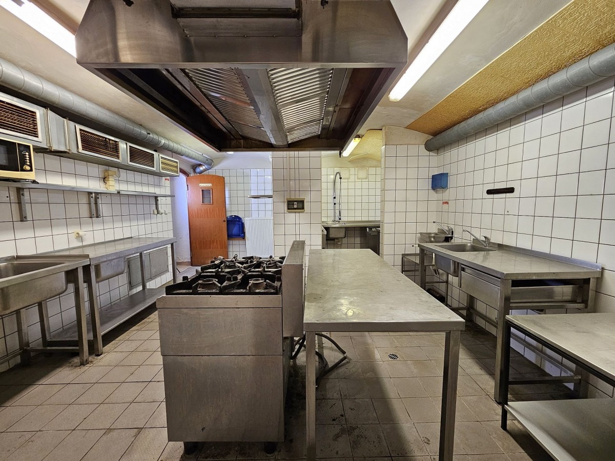 Druhá část nebytových prostor se nachází v suterénu domu, je přístupná ze společné chodby, a má celkovou výměru cca 133 m2. V této části nebytových prostor jsou jak volné plochy dříve sloužící jako restaurace s barovým zázemím, tak také zařízená kuchyně včetně vzduchotechniky. Vybavení zůstane v prostorách. Jako využití se nabízí např. provoz kuchyně pro krabičkovou stravu či dietu, nebo jiný gastro provoz. V prostorách se nachází dostatečně velké a kvalitní zázemí pro zaměstnance, sociální zařízení, šatna sklad atd. Prostory můžou sloužit k jakémukoli jinému provozu, který si po změně užívání nový majitel zajistí. Díky velikosti prostor lze přestavět např. na dnes oblíbené saunové centrum, masáže, ale i zde díky rozvodům vody a dostatečnému zázemí je možné využití prostor pro služby jako je tetovací salon, barber shop, masáže, manikúra, pedikúra nebo internetové připojeníový obchod.