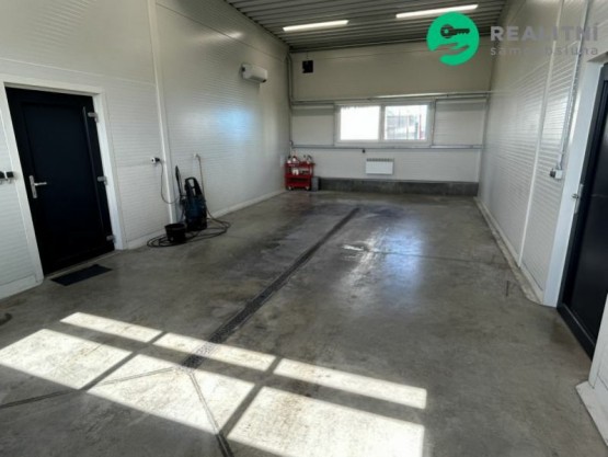 Hala má 3 garážová vrata 3, 2 krát 3, 2m, rozměry všech garáží jsou stejné, 60m2. První garážové stání je určeno jako ruční myčka vozidel s odtokovým žlabem, druhé a třetí je pro přípravu vozidel, autoservis. Místnosti jsou vzájemně průchozí. Vstupní místnost je reprezentativní, kancelářská, 1 krát sociální zařízení WC pro zákazníky, 1 krát sociální zařízení WC se sprchou pro zaměstnance, kuchyňka.