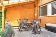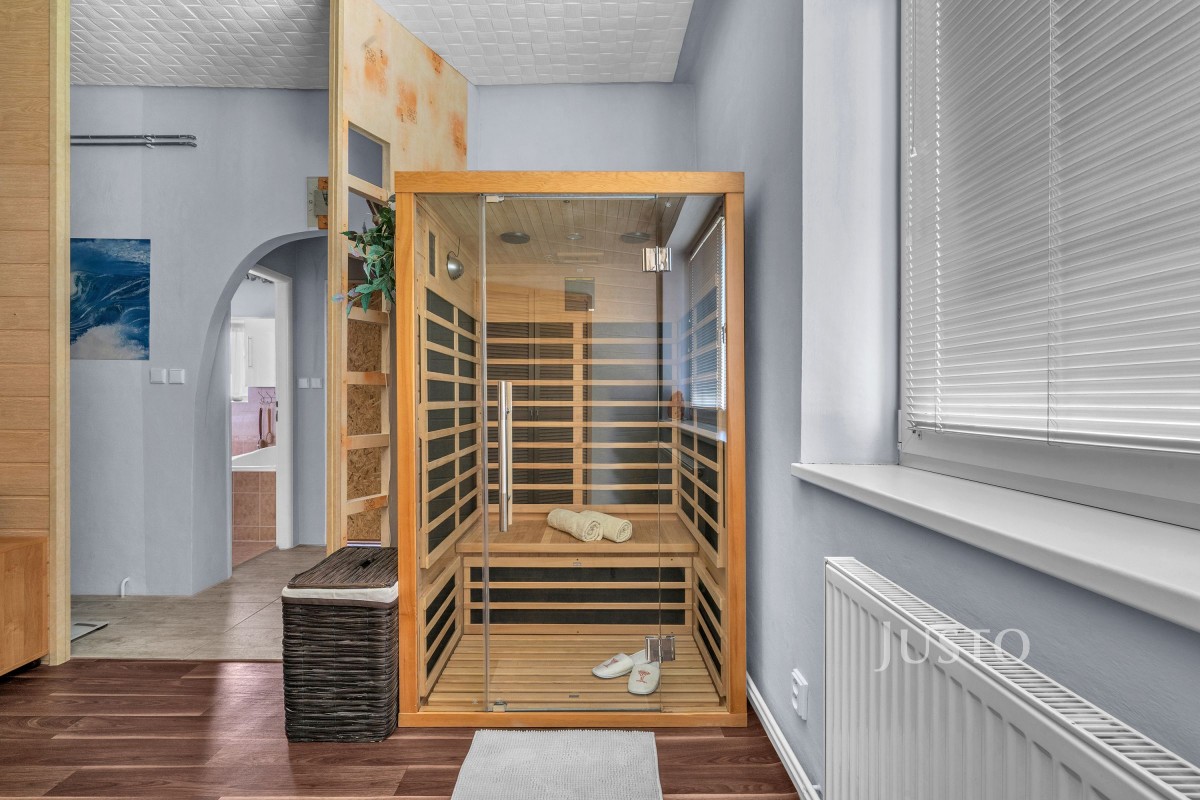 Kromě velice klidné zahrady se vzrostlými stromy máte k dispozici terasu s pergolou (30 m²) i nádherný zahradní domek, kde můžete spočinout po náročném dni, nebo víkendovém grilování. Do zahradního domku je zavedená elektrika. Na pergolu lze v zimních měsících přidělat průhlednou zástěnu. Pokud máte rádi víno, nebo rádi zavařujete, tak určitě oceníte kamenný sklep s půlkulatým stropem.