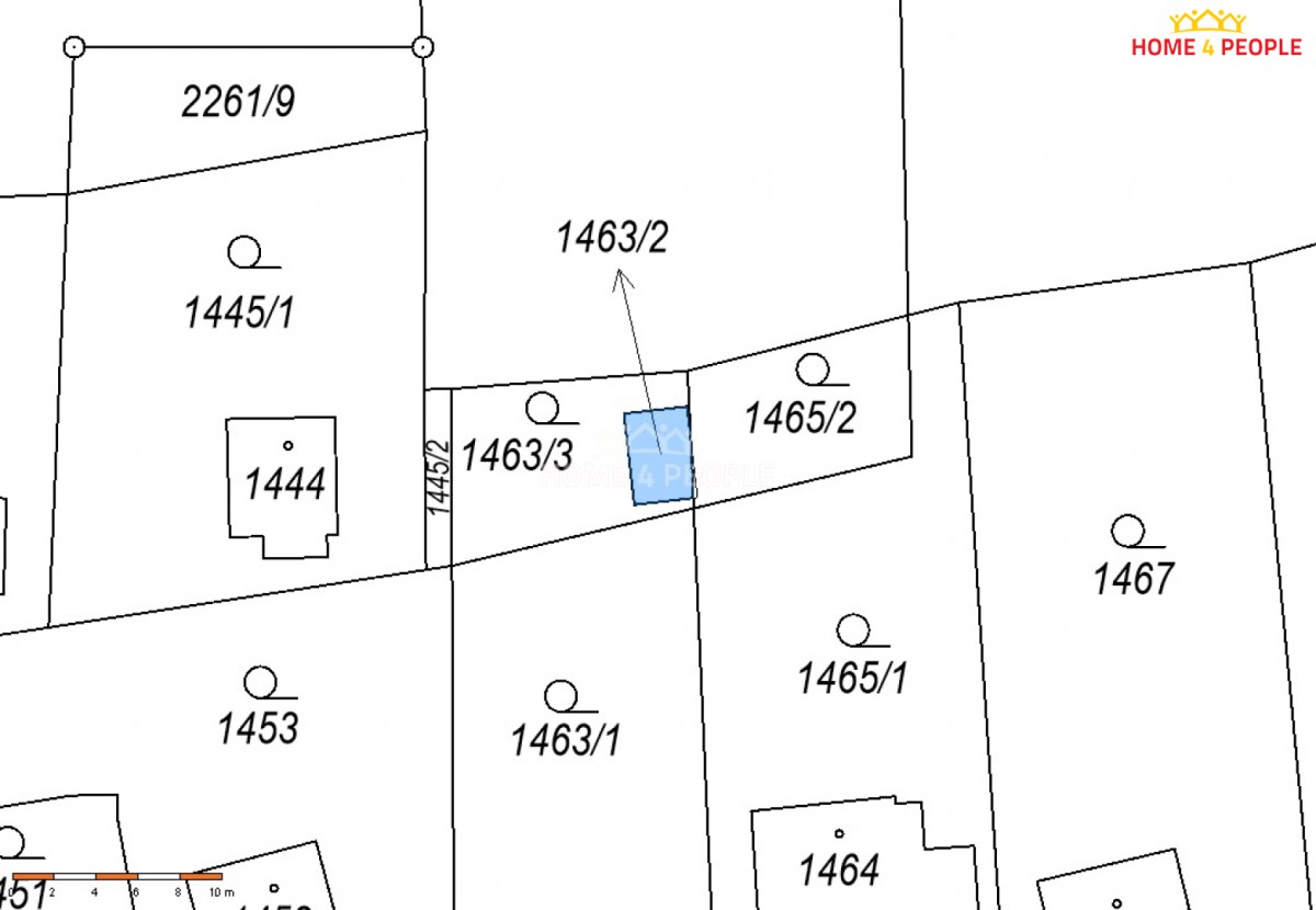 Pozemek má celkovou výměru cca 13 m², předmětem prodeje je t...edy ideální polovina podílu.