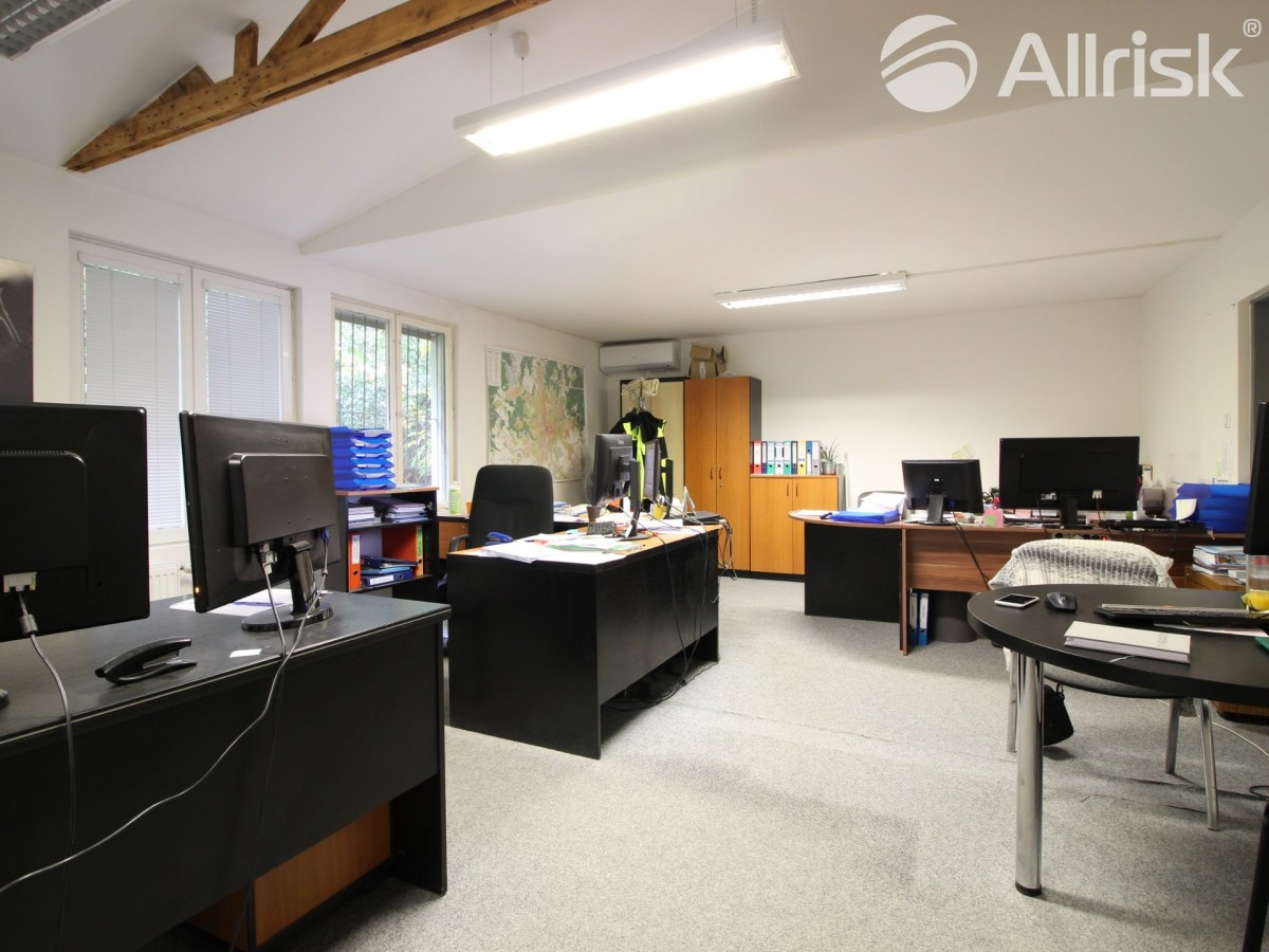 Prodej samostatné 1/2 nemovitostí, která vznikne po dohodě rozdělením. Bezprovizně pro zájemce nabízíme k prodeji polovinu dvoupodlažní komerční budovu s vlastním pozemkem v otevřeném komerčním areálu v sousedství obytné zó...ny s veškerou občanskou vybaveností. Budova má celkovou užitnou plochu 1000 m2, kterou tvoří cca 300 m2 suterén se sklady přístupný v úrovni terénu a zbylých cca 700 m2 tvoří kanceláře a netopený sklad se vstupem z rampy. Pozemek je svažitý a má celkovou výměru 3330 m2 včetně příjezdové cesty a tvoří jej převážně zpevněné plochy. Budova je připojena na všechny sítě, vytápění administrativní části slouží plynový kotel, příjezd je zajištěn podílem na příjezdové komunikaci vedoucí od hlavní silnice. Zastávka MHD je ve vzdálenosti 400 m, v sousedství budovy je veřejné parkoviště. Kromě možnosti komerčního využití jako kanceláře, sklady či lehká výroba, má nemovitost díky své poloze potenciál využití i jako ubytovna či kombinace těchto činností. Velikost pozemku pak nabízí i možnost rozšíření. Průkaz energetické náročnosti v řešení dle vyhlášky, údaj bude aktualizován, proto uvádíme nyní třídu G. Bližší informace u makléře na základě vyplnění kontaktního formuláře s představením firmy a záměru. Pokud jste si nevybrali z uveřejněné nabídky, zadejte nám prosím Vaši poptávku a my se pokusíme najít odpovídající nemovitost.
