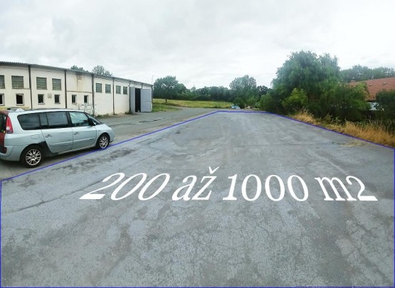 Pozemky jsou převážně rovinné, zhutnělé, s asfaltovým, štěrkovým či betonovým povrchem. Příjezd pro veškerou nákladní dopravu včetně TIR. Areál oplocen, příjezd nákladní bránou z hlavní komunikace, částečně osvětleno. K dispozici ing. sítě a to 220V, voda, kanalizace. Vhodné na parkování dopravní techniky (aktuálně), dále jako Stavební dvůr, sklady strojů a zařízení, Možno též. instalace and #34;plachtové / kovové haly and #34;, uložení kontejnerů a jiné venkovní sklady. U pozemku and #34;s travnatým povrchem and #34; lze provést zhutnění skrývky ( štěrk, recyklát, asfalt ) a instalace dočasných lehkých hal. Dohoda o započtení nákladů proti dlouhodobému Nájmu. Jednání o nájmu možno IHNED.