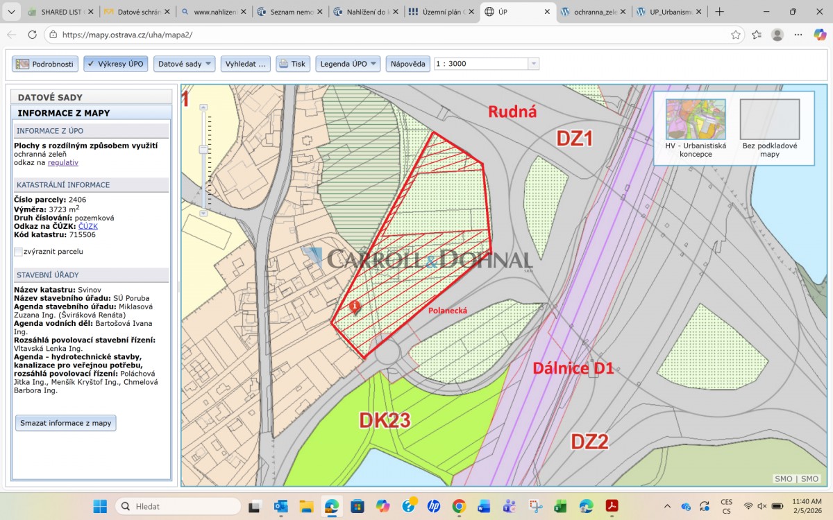 Nabízíme k pronájmu soubor pozemků o celkové výměře 22 816 m v lokalitě Ostrava - Svinov. V územním plánu je pozemek evidován jako ochranná zeleň.