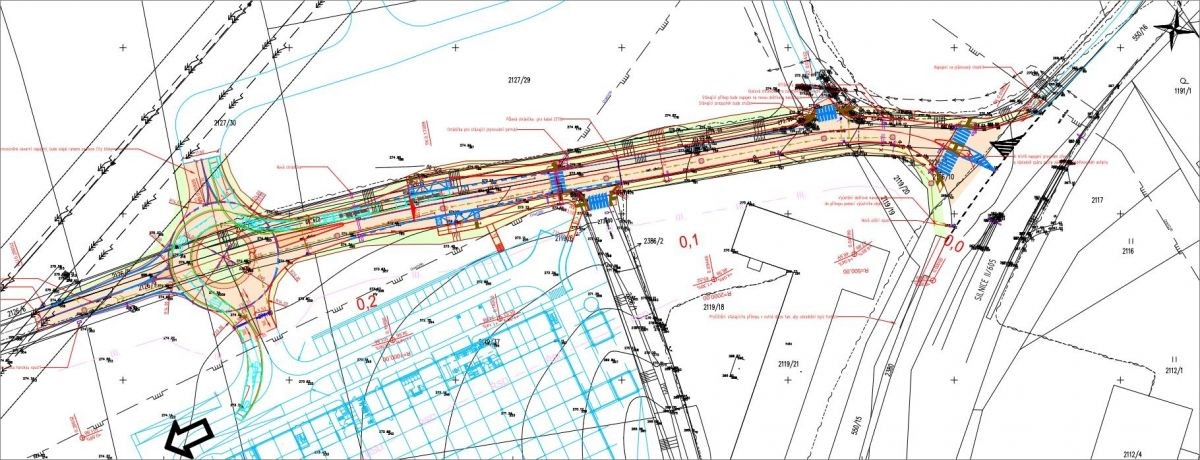 K dispozici v ARCHA veškeré dokumentace pro UR komunikací, křižovatky a plánovaných přípojek, dále stanoviska dotčených orgánů v rámci povolení staveb a Policie - na vyžádání.