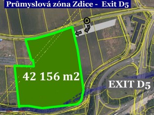 Prodej pozemku v Průmyslové zóně, EXIT dálnice D5, Zdice.