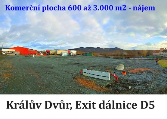 Aktuálně k dispozici 2 krát cca 1000 + 600 m2 ( popř 2100 m2 ) venkovní rovinná plocha pro komerční využití + další připravované pozemky. Nájezd na pozemek z budované komunikace - viz plánek. Připraveny ing. sítě 220/280V, voda, kanalizace (!). . . . . . Možno k nájmu malá admin. budova, vytvořena ze dvou izolovaných buňek, obsahující zázemí a vodu - barevné foto. Nutno dodělat interiérové úpravy. Na pozemku lze umístit dočasné lehké stavby, KONTEJNERY, plátěné haly, nebo přístřešky. Prostory vhodné na parkování dopravní a stavební techniky, venkovní sklady zařízení a materiálu, jako technický - stavební dvůr, Příjezd bez většího omezení. Nájem /rezervace možná IHNED.