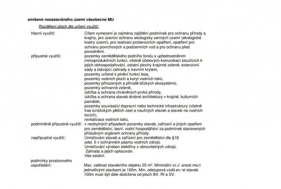 Pozemky jsou dle územního plánu zařazeny do ploch nezastavitelných smíšených (plochy smíšené nezastavěného území všeobecné).
