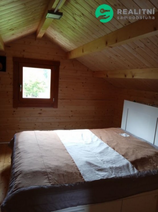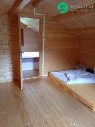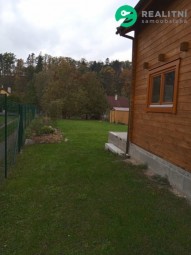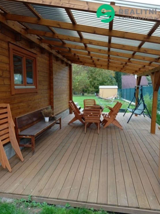 Na pozemku stojí již dřevěná novostavba srubového typu zkolaudovaná v roce 2021, užitná plocha 70 m. Zateplené podlahy a střecha, po zateplení obvodových zdí i k trvalému bydlení. Přední terasa připravena na prosklenou zimní zahradu, nebo další místnost, prostorná boční terasa o velikosti 8 krát 4 metrů, krytá polopropustným polykarbonátem se zárukou 10 let na krytinu. Vytápění krbovými kamny. Případnou novostavbu lze propojit již se stávající chatou. Pozemek má vlastní studnu s pitnou vodou, elektřina připojena na vlastní kapličku, septik vyvážecí, odpadní voda z koupelny vedena do vsakovací jímky. Pozemek ve výhodné lokalitě 5 min cesty na MHD. Ve vlastnictví ještě geodeticky oddělený pozemek 682m přímo u řeky - zatravněná plocha s renovovaným karavanem 6 m délky, který je předmětem dalšího samostatného prodeje, nebo může být prodáno společně.
