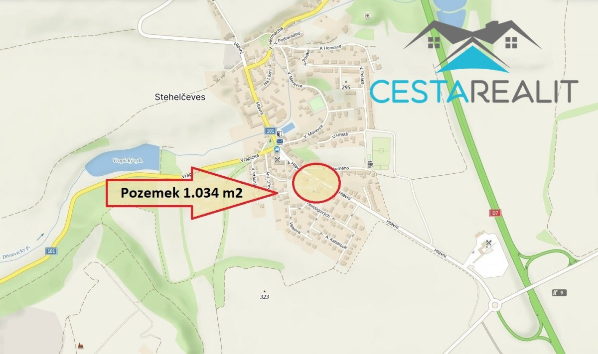 Popis: Nabízím Vám ke koupi stavební pozemek o celkové výměře 1. 034 m2 v obci Stehelčeves.
