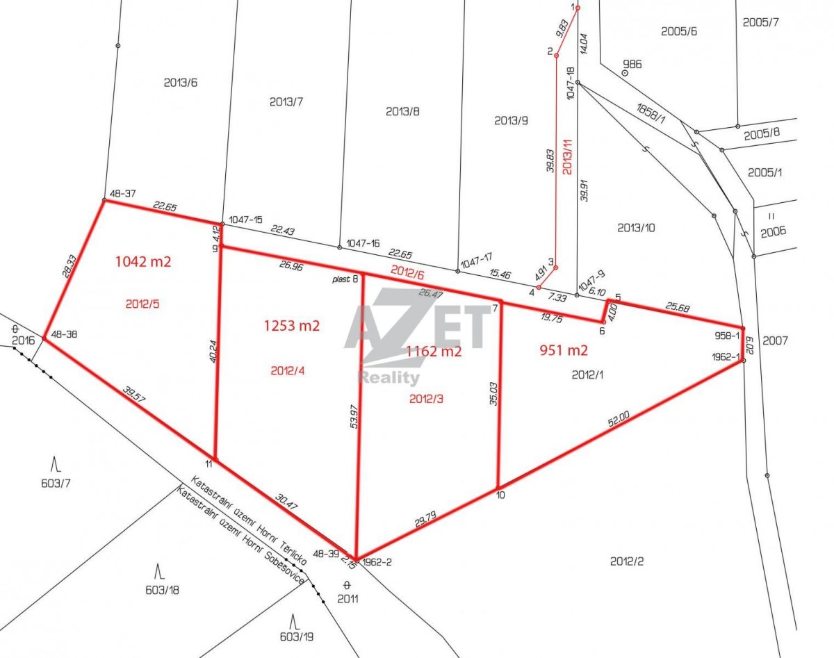 Naše společnost Vám exkluzivně nabízí čtyři stavební pozemky o velikosti 1042 m2, 1253 m2, 1162 m2 a 951 m2 v klidné a žádané lokalitě Horního Těrlicka. Možnost odkoupení celého po...zemku za zvýhodněnou cenu. Polorovinatý terén. Využití je vhodné na výstavbu rodinných domů nebo chat. Účelná příležitost i pro investora. Přístupnost z obecní cesty. Vybudování vodovodního řádu je naplánováno nejpozději do roku 2022. Elektrický proud (230 a 380 V) na samotném pozemku. Připojení zemního plynu ve vzdálenosti cca 60 m. Realizace kanalizace je možná v podobě čističky odpadních vod, septiku nebo žumpy. Hranice pozemku lemují louky, lesy a rodinné zástavby. Velkou výhodou je bezprostřední dostupnost autobusové dopravy a blízká poloha Těrlické přehrady. Finanční poradenství zajistíme zdarma s výhodným úročením. Pro další informace kontaktujte našeho makléře.