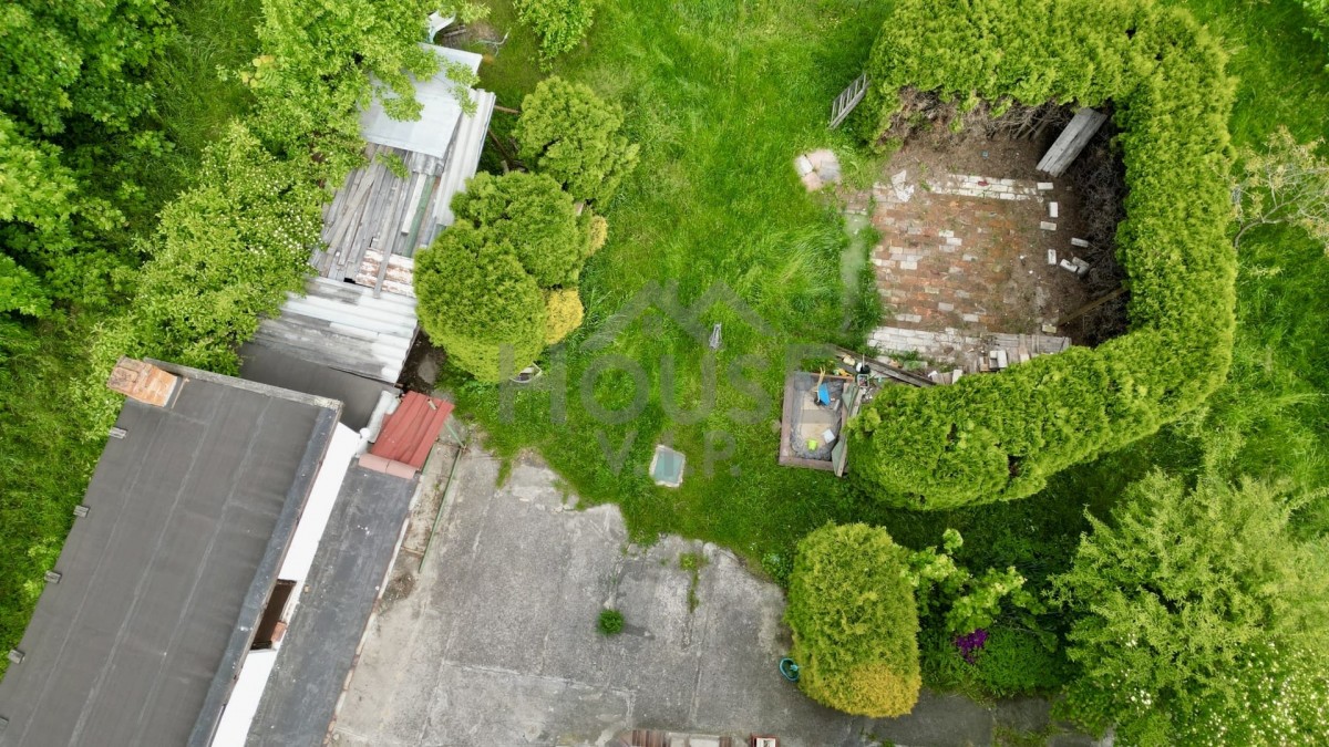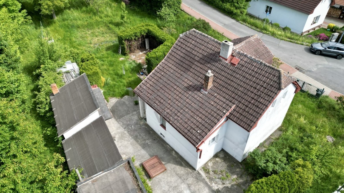 Na pozemku se nachází částečně podsklepený rodinný dům z 60. let o celkové užitné ploše 110 m² (přízemí 52 m², patro 39, 5 m², sklep 19 m²). Dům je udržovaný, s plastovými okny, zateplenou fasádou a obytnou půdou. Vytápění je řešeno elektrokotlem nebo kotlem na tuhá paliva. K dispozici je také garáž, dvě kůlny, funkční studna a napojení na městskou vodu, elektřinu i kanalizaci.