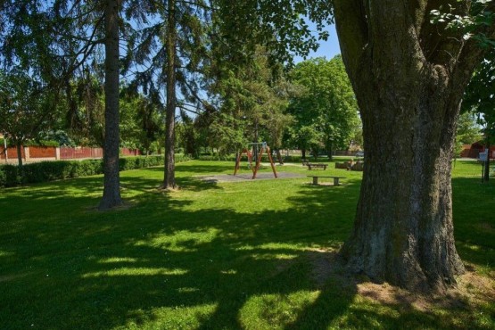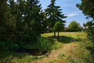 Pozemek s výhledem do parku je orientován na jihozápadní stranu a je tudíž krásně slunný. Díky své poloze v samém srdci obce je výhled na kostel sv. Jana Křtitele z 1. poloviny 13. století a veškerá občanská vybavenost obce je v docházkové vzdálenosti. V okolí pozemku je plně urbanisticky rozvinutá rezidenční část obce a nehrozí zde sousedství s novými satelity vznikající v okolí Prahy, obklopují ho zahrady rodinných domů. Pozemek byl dlouhou dobu využívám jako zahrada rodinného domu, je zde několik vzrostlých stromů a keřů, travnatý porost a malé jezírko. Při ohleduplném vsazení stavby domu je možné ihned plně využívat vzrostou zahradu.
