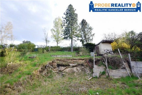 Oplocený pozemek s...e severní orientací se nachází v zahrádkářské kolonii v Račicích přímo nad malebnou Berounkou. Svažitý pozemek se skládá ze tří parcel o celkové ploše 1. 181 m2 - část je podíl na příjezdové cestě, část je parcela o výměře 48 m2, kde stála původní chata a zbytek prostorná zahrada. V horní části pozemku jsou zbytky původní chaty - sklep a ve střední části byly vybudovány 2 velké opěrné zdi z vyztuženého betonu o šířce cca 15 metrů.