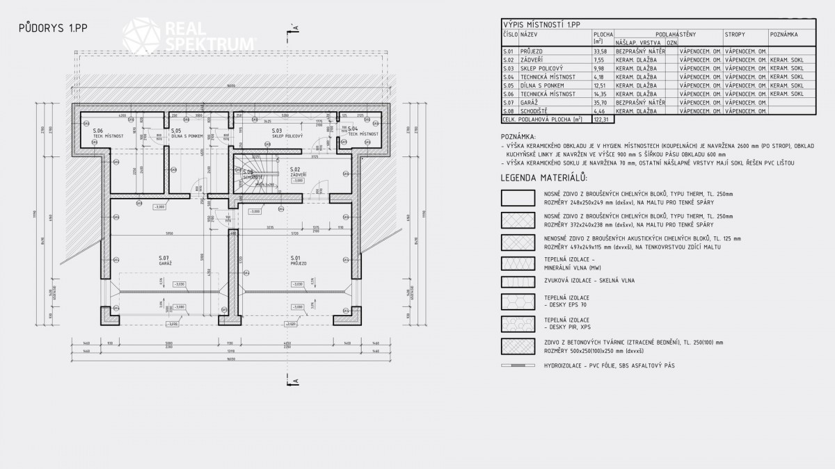 - 1. PP – 122, 31 m2 (garáže, technická místnost, dílna, sklep)