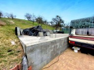Je již vydané stavební povolení + elektřina na pozemku (elektroměr), voda (vodoměr) plyn je vzdáleny od pozemku cca 50 m, základová deska 9. 5 krát 8. Stavební povolení vydáno na bungalov, plány lze poupravit na patrový dům, zámková dlažba + plechová garáž 6 krát 3m. obecni asfaltová přístupová cesta. Pozemek je oploceny na klidným místě, polosamota.