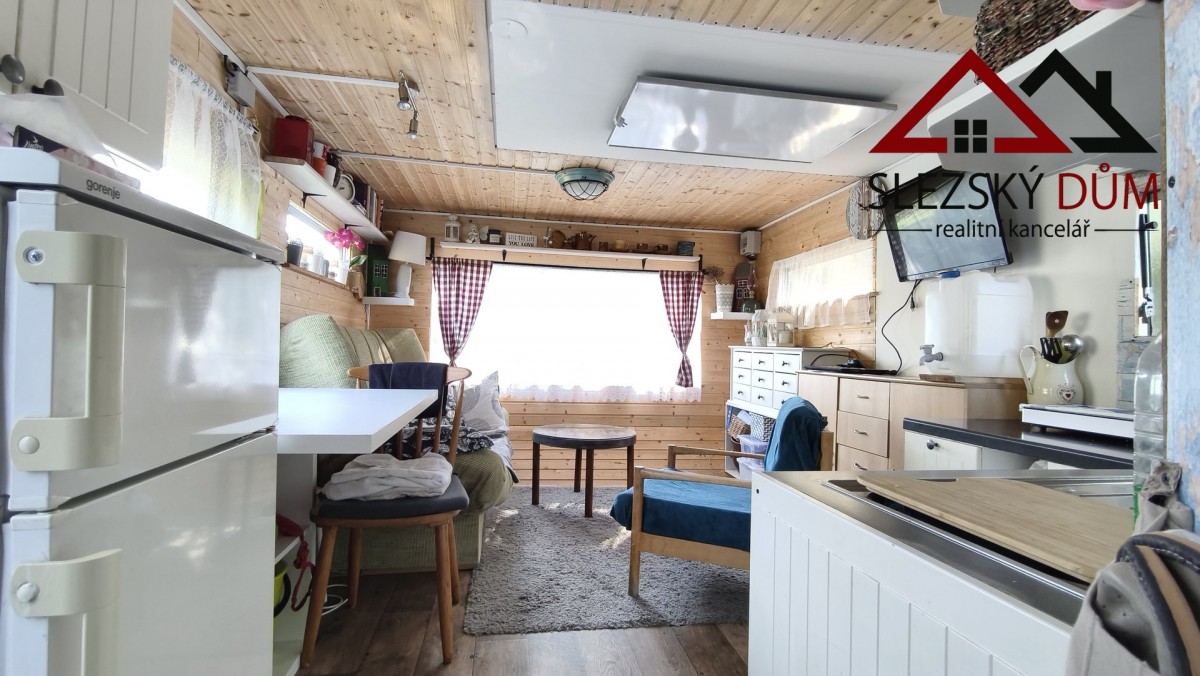 • mobilní dům v původní ceně 180tis, modernizovaný, vhodný k přespání a odpočinek nového majitele nebo pracovníků na stavbě