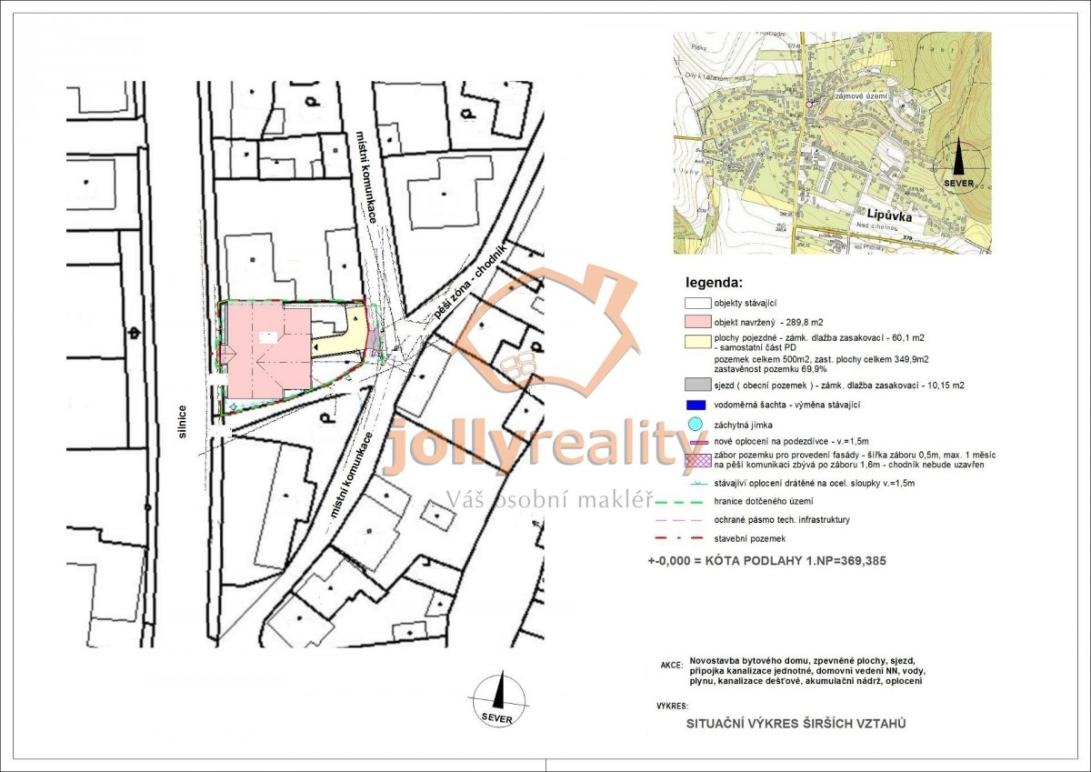 o rozloze 500 m2, v katastrálním území Lipůvka, v okrese Blansko. Projekt na výstavbu bytů včetně půdorysu, situace širších vztahů
