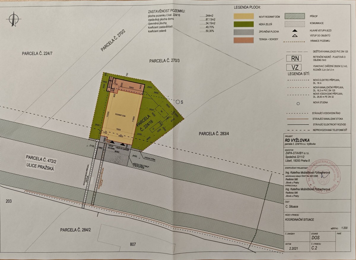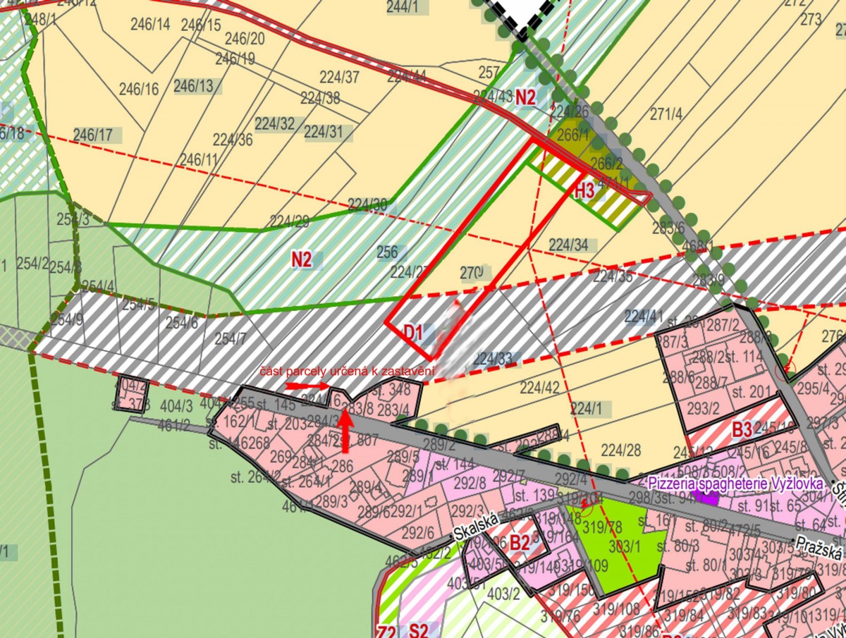 Nabízíme k prodeji stavební pozemek vhodný pro výstavbu rodinného domu. Pozemek o celkové výměře 1707 m2, se skládá ze 3 samostatných parcel(plánek ve fotogalerii), dle územního plánu je určeno k zastavění 244m<...sup>2, ostatní možno využít jako zahradu, parkování apod. . Rovinatý pozemek lichoběžníkového tvaruje je umístěn při ulici Pražská v intravilánu obce Jevany - Vyžlovka, bezproblémový přístup se sjezdem z hlavní silnice( povolení sjezdu včetně projektové dokumentace), v přiléhající komunikaci jsou umístěny páteřní sítě s možností připojení(kanalizace, voda) , el. je již zavedena + povolení na studnu. K dispozici studie a projektová dokumentace na umístění RD (rodinný dům)( ve fotogalerii). Možnost přikoupení dalšího navazujícího pozemku, nebo jeho části, podmínky dle dohody. Další podrobné informace poskytne makléř zakázky. Doporučujeme