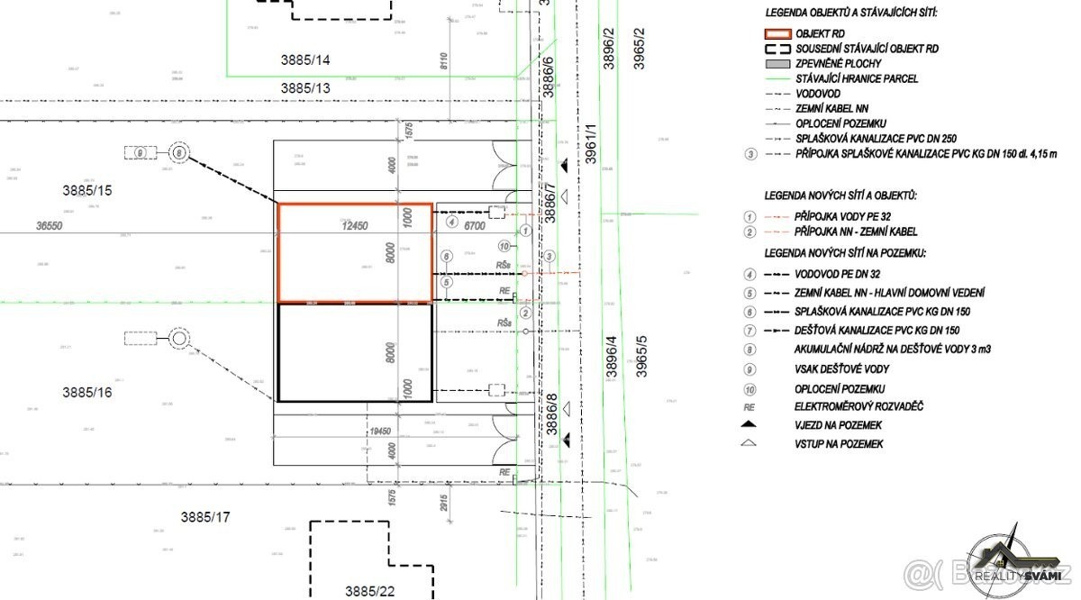 kompletní inženýrské sítě na pozemku