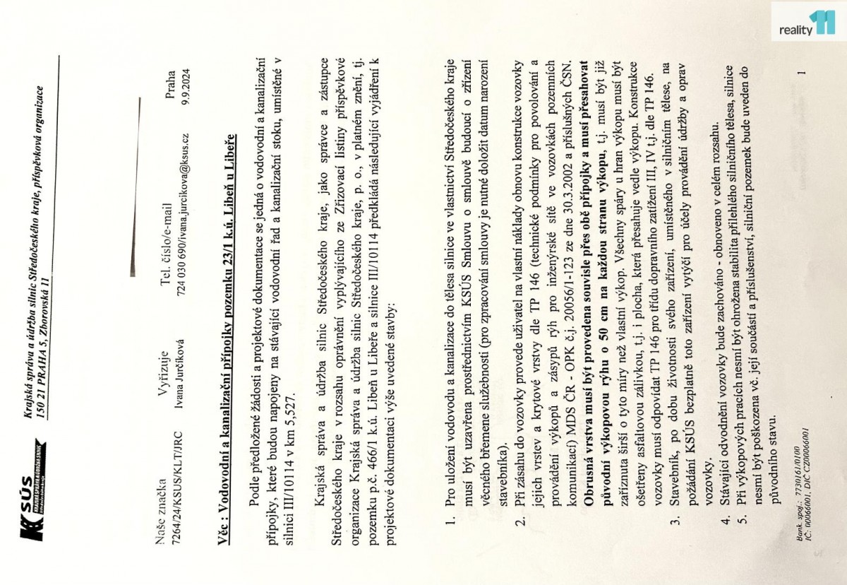 Neplatíte provizi RK. Jednat budete přímo s majitelem nemovitosti. . Reality 11 Vám zprostředkují prodej stavebního pozemku, který se nachází v obci Libeň u Libře na Praze Západ cca 2 km od Dolních Břežan.