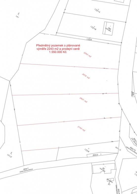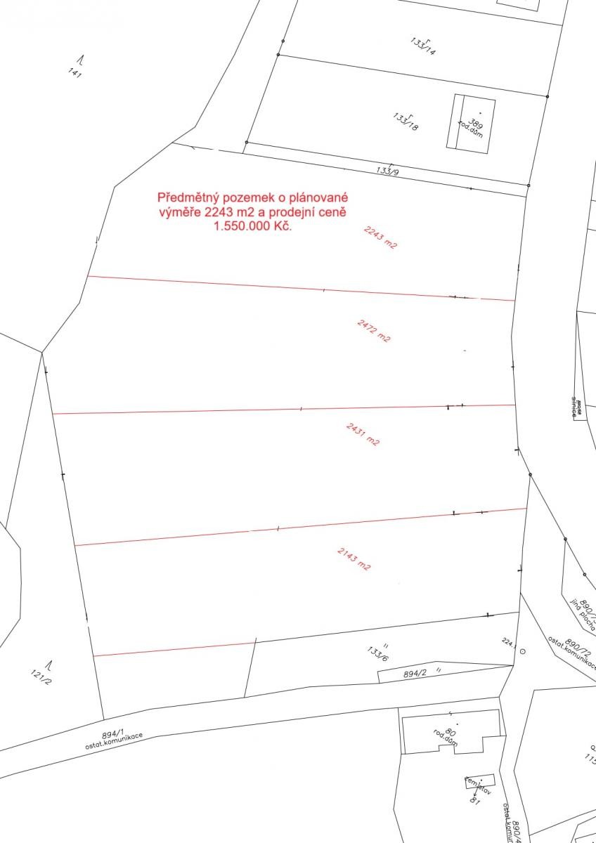 Pozemek k bydlení 2243 m2 - Běstvina , okr. Chrudim