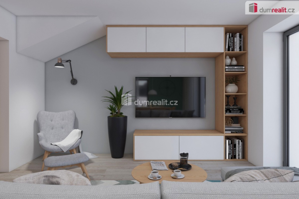 Plánovaná stavba: Novostavba zahrnující tři samostatné mezonetové apartmány, každý s přímým přístupem na terasu a k pozemku.