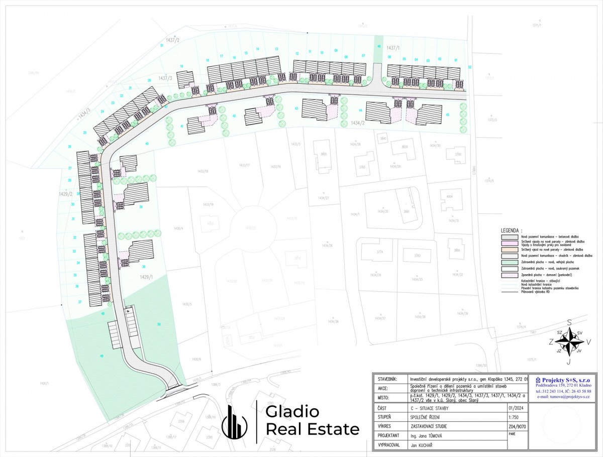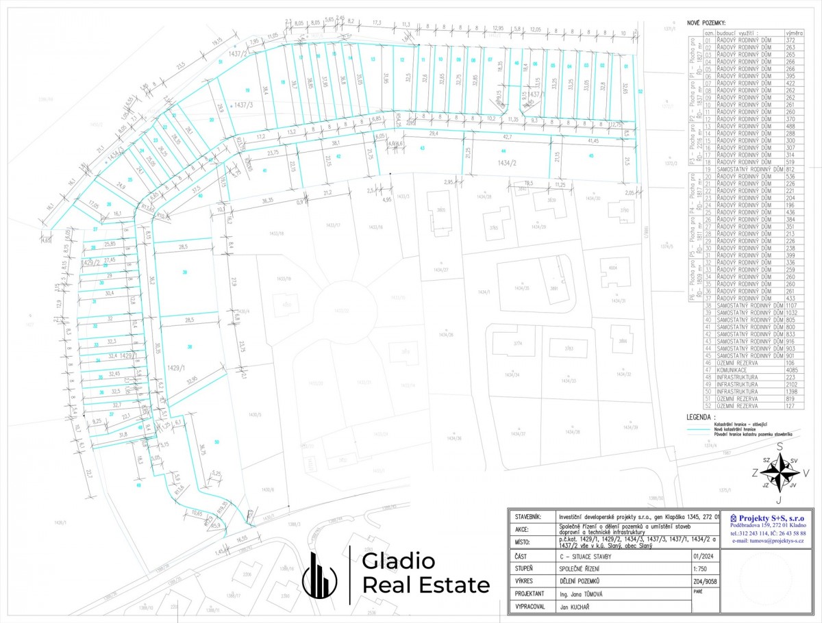 Ohledně pozemků byla vydáno pravomocné rozhodnutí o dělení pozemků a umístění staveb dopravní a technické infrastruktury a umístění rodinných domů.