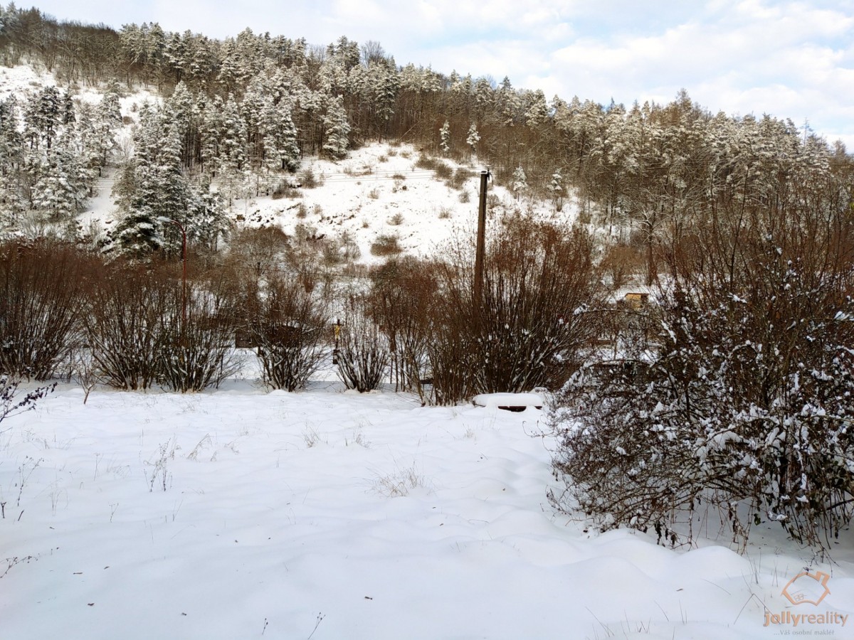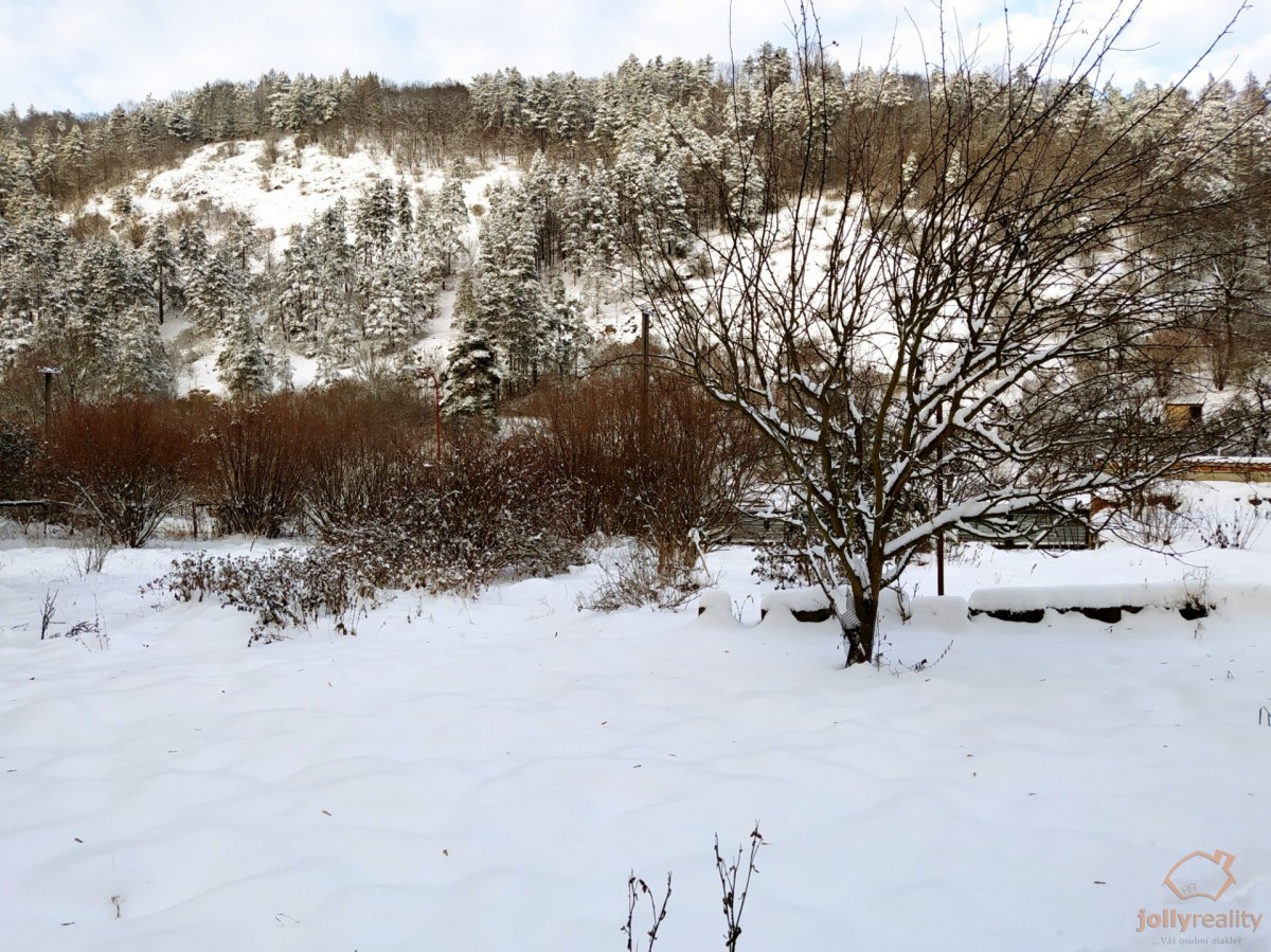 Z pozemku je hezký výhled na kopce v Lažánkách na protější straně silnice.