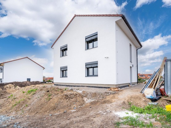 V současné době je dům postavený tak, jako na fotografiích. Budou probíhat dokončovací práce (podlahy, obložky a dveře, obklady koupelen, předsíně, vybavení koupelen a sociální zařízení WC sanitární technikou). Před domem budou tři parkovací stání a je zde i možnost postavení garáže.