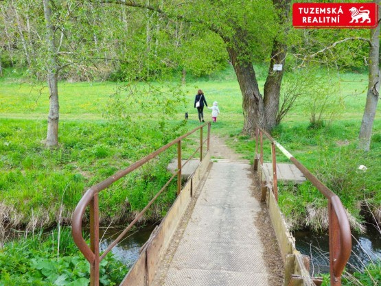 Na konci ulice, 250 m od pozemku, přejdete mostek přes potůček a otevírá se před vámi krásná krajina, sestávající ze smíšeného lesa a louky s pěšinou, která Vás zve na procházku se psem, zaběhat si, či projet se na kole. Je to naučná stezka se jménem Už ty mlýny doklapaly.
